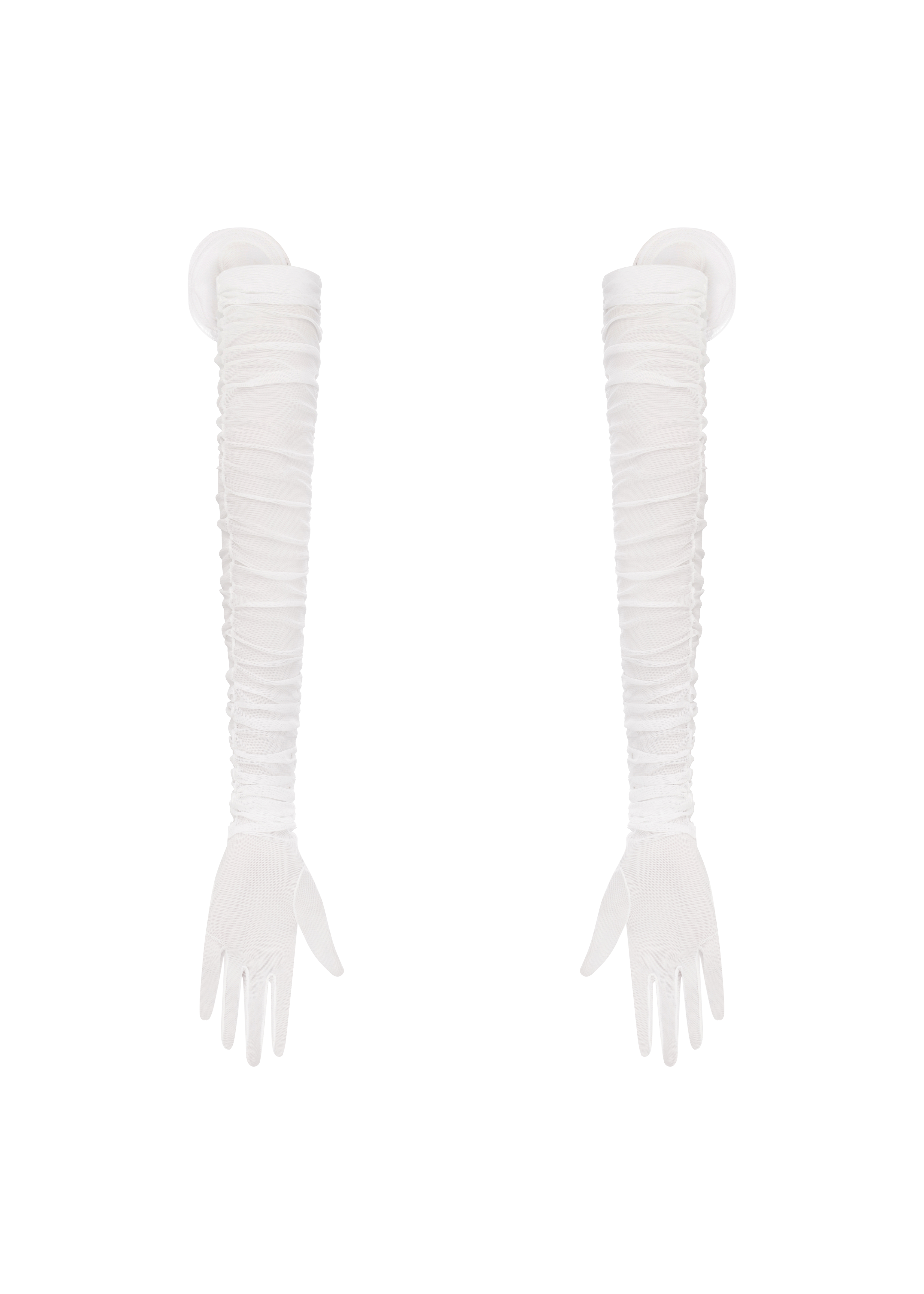 First date folded gloves, crafted from delicate white mesh, and adorned with handmade flowers, offer a unique accessory to elevate your ensemble. Designed to be long, they add a dramatic and alluring touch to your look, making you stand out from the crowd. Perfect for adding intrigue and flair, these gloves are the ideal statement piece to make a lasting impression wherever you go.