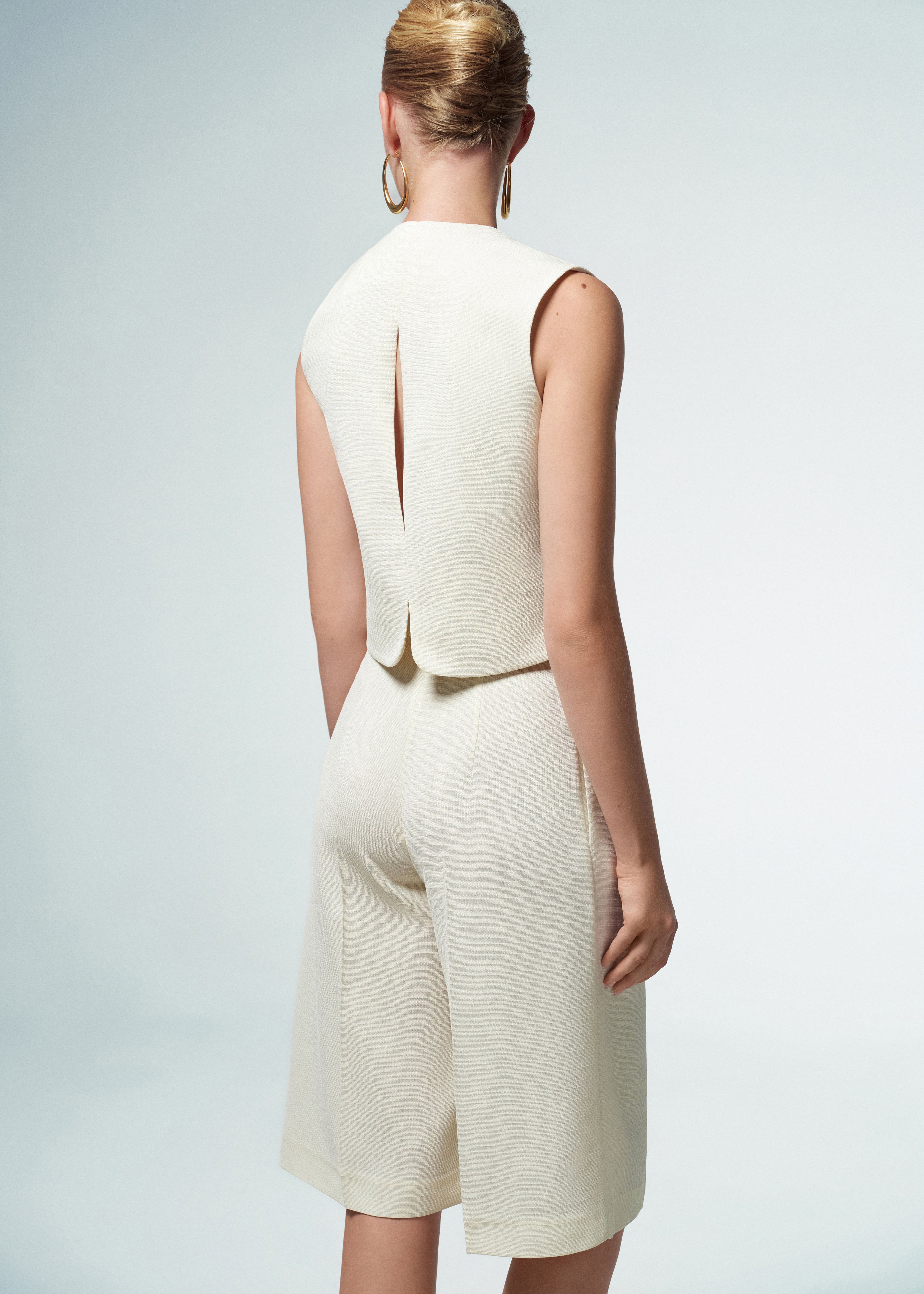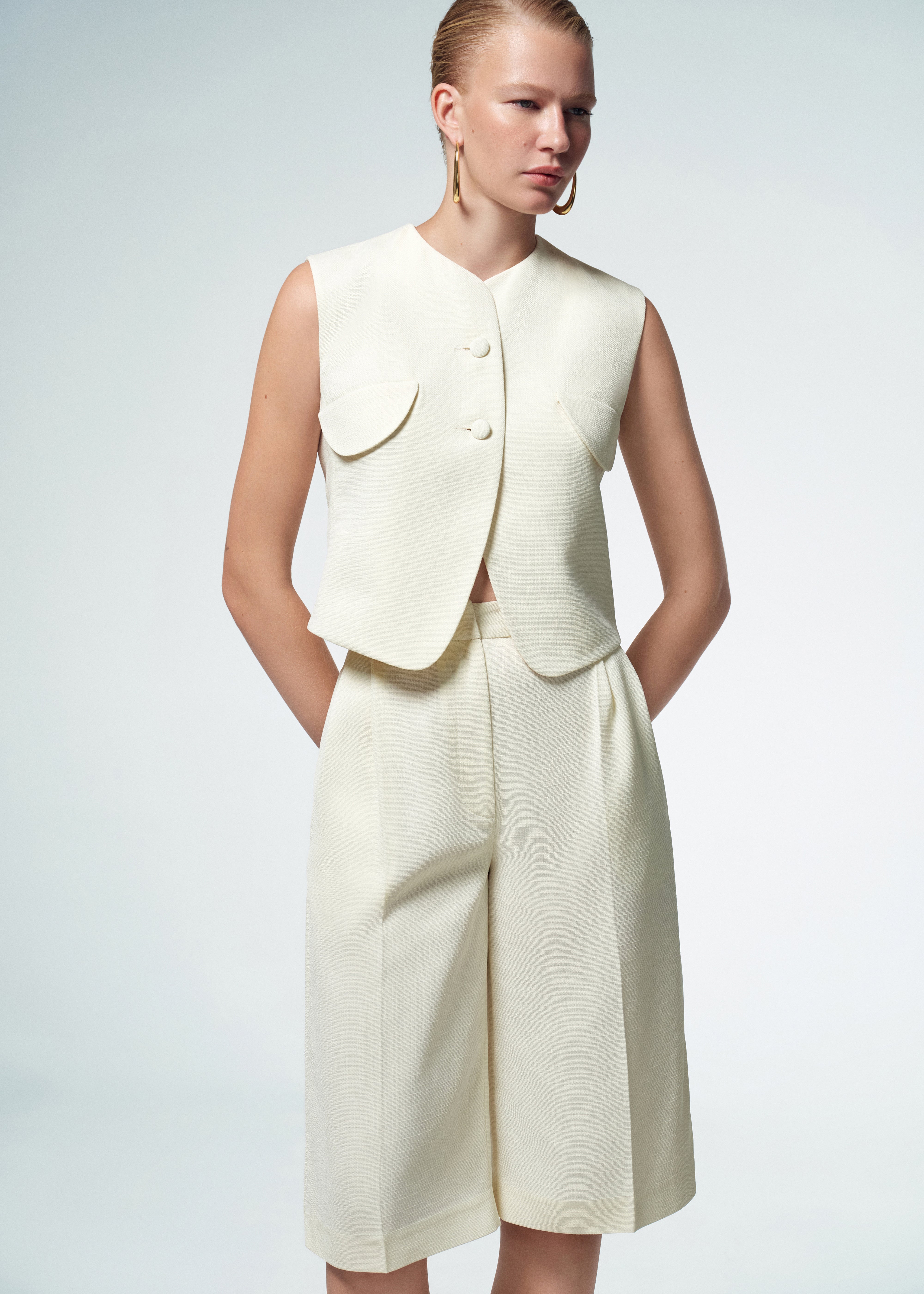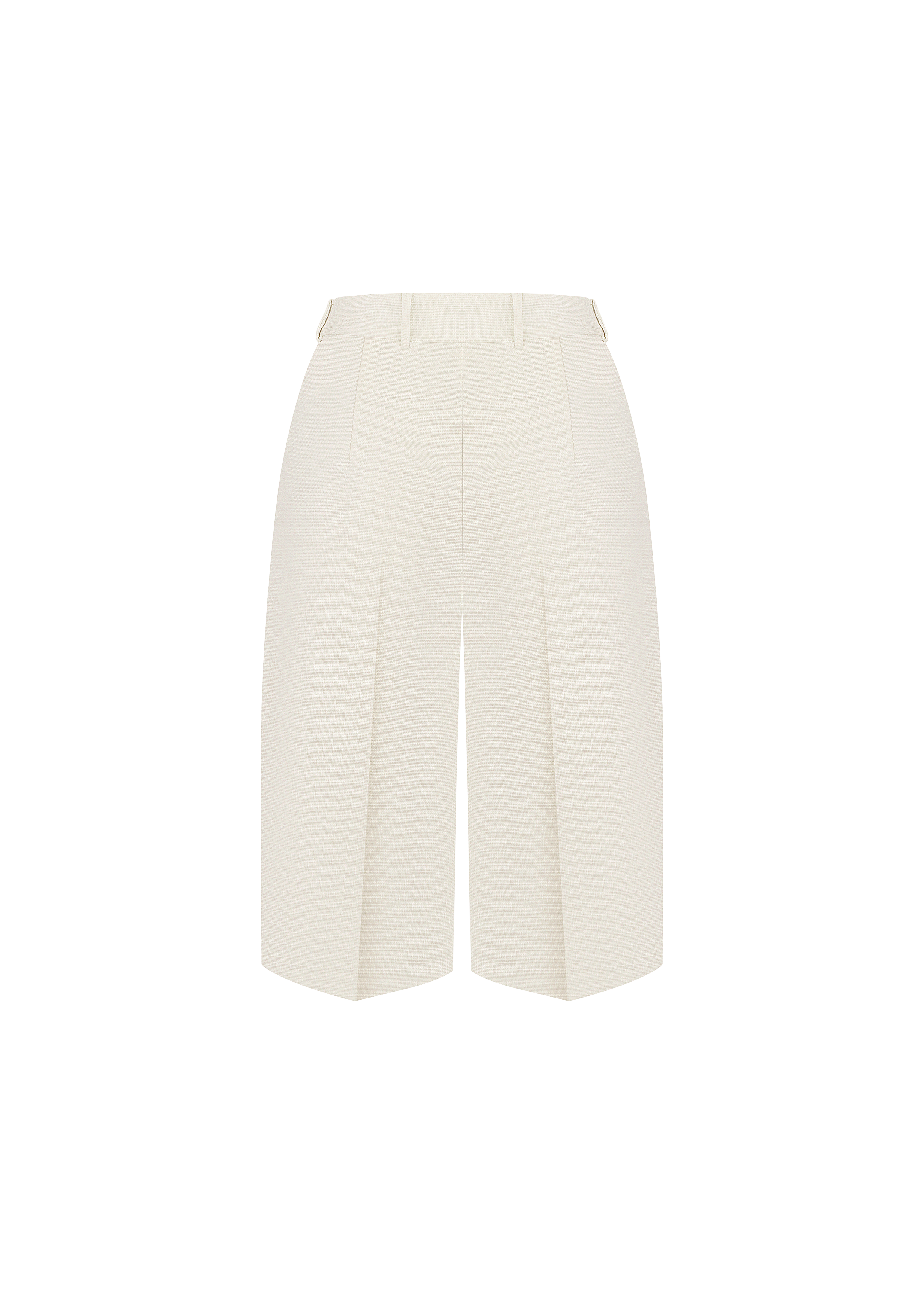Linda shorts in milky color are high-rise, long pleated bermuda shorts. The high rise and tight waistband ensure a flattering and comfortable fit, while the straight cut provides a relaxed, laid-back vibe. Zip and button fastening.