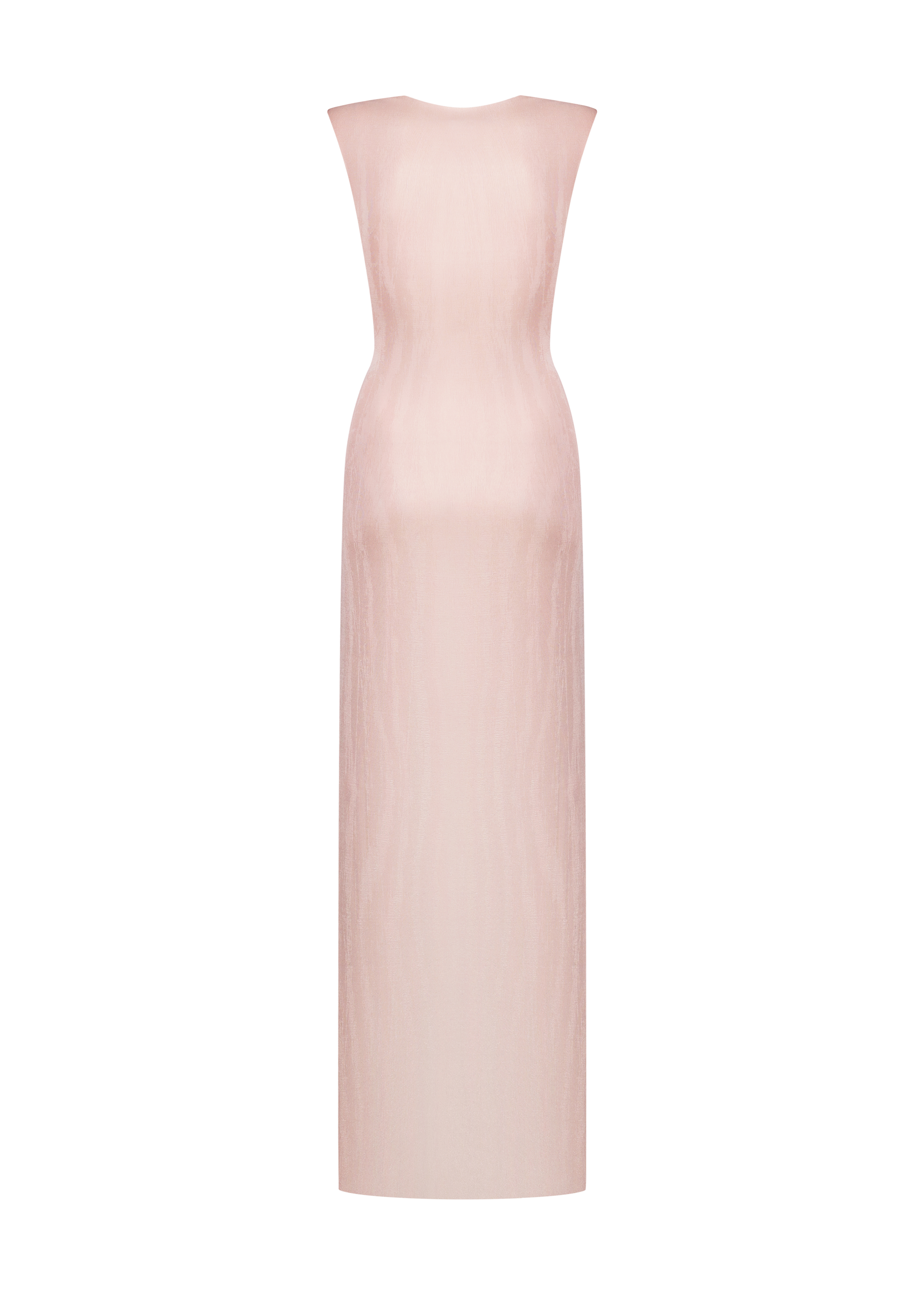 Сукня максі без рукавів має вирізи, прикрашені квітами ручної роботи, які додають вишуканості мінімалістичному дизайну. Ідеально підходить для тих, хто цінує невимушений стиль з унікальними акцентами.